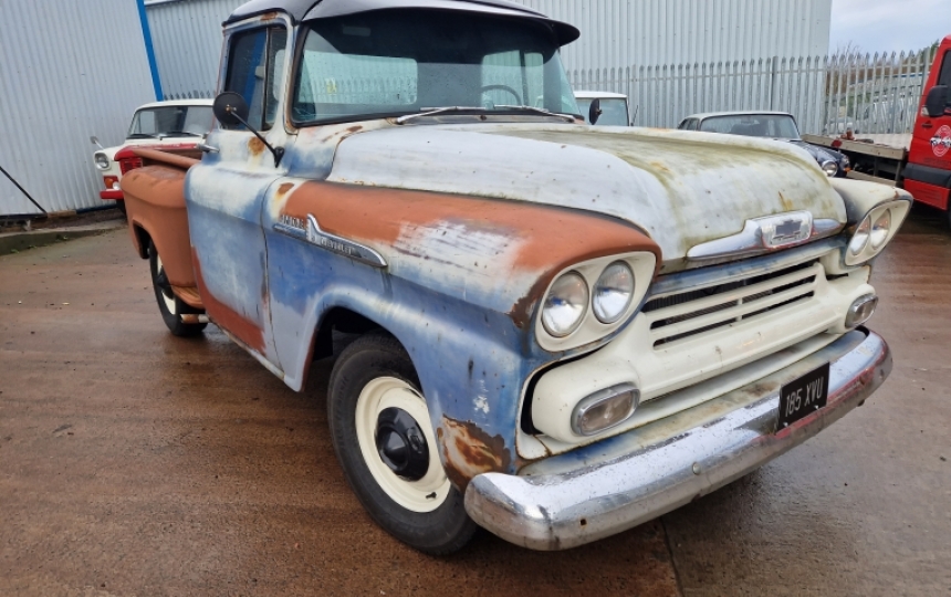 Body - 58 Apache. Chassis is all solid and has been painted. Truck has had repairs on lower cab corners and door bottom but is all really rock solid. You could run it as it is or get it all painted. Its a mixture of grey primers, red lead and rub throughs. Some folk love it as it is. Door rubbers missing which makes them a bit rattly