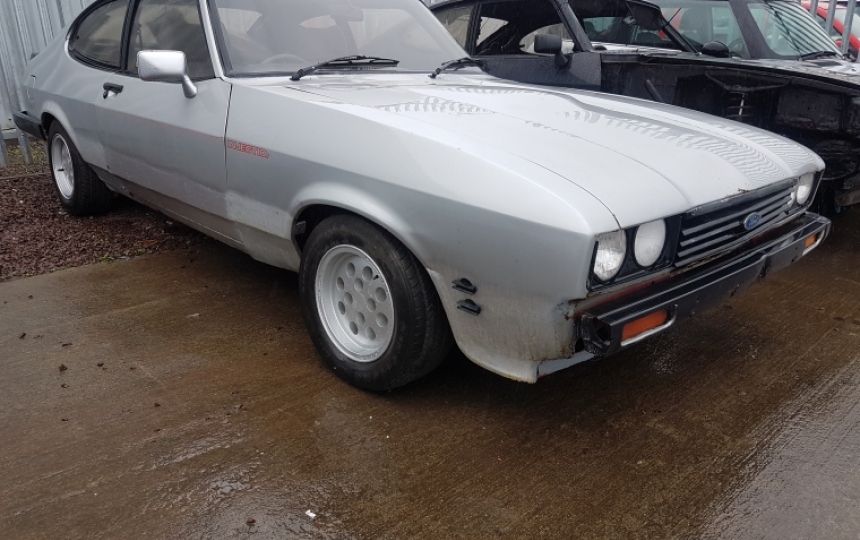 FORD CAPRI 2.8i in need of full restoration. Car is complete apart from a few minor things like bumper endcaps. The interior has been changed at some point to an LS interior which is clean and tidy. Will need work in all the usual areas, floor, inner wings, boot , lower quarters etc. Has had work done before on strut tops etc. Last on the road in 2001. Not had it running yet but will try to do so before the end of the auction.