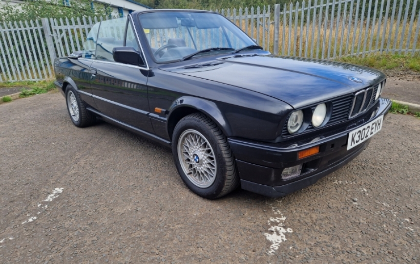 1992 BMW 320i E30 5 Speed Manual Convertible. The car has covered 87000 Miles but had a documented Speedo change at 54K. The clock shows 33K. We have a sizeable history folder full of main dealer receipts, the original handbook and service book with 10 plus stamps, which a lot are main dealer. The car got damage to the roof in 2013 and was declared a CAT C and then subsequently repaired.