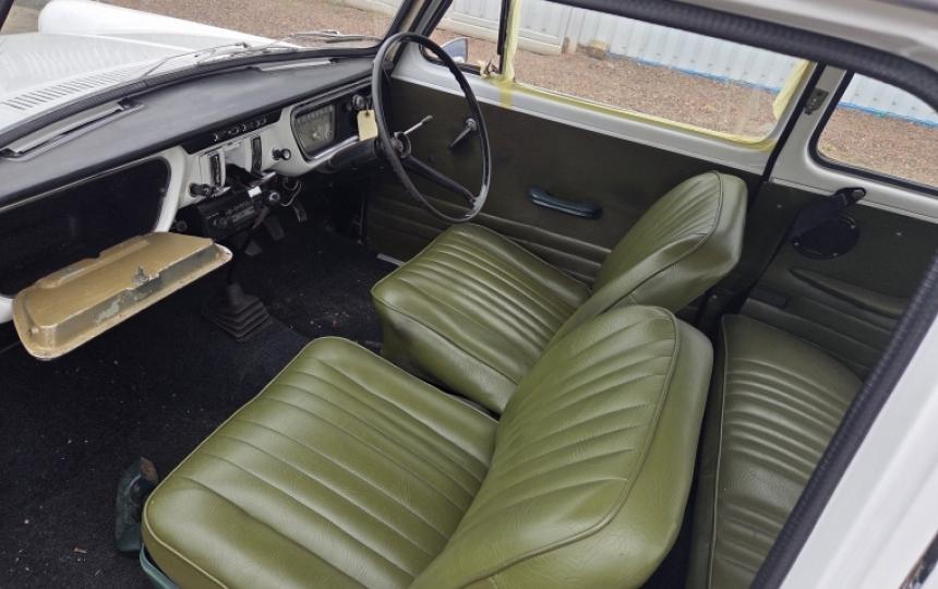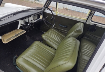 Interior - Green seats and door cards. Window winder handles missing. Drivers window is detached from the runner and needs sorting. Seats are ok with no rips and tears.