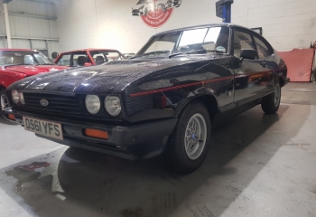 Body - Capri Laser shell. Original floors, sills, arches, boot floor. Has had repairs on strut tops in the past and a repair on top of the drivers door post. Underneath is very good. Needs a bit of a wirebrush in bits but no holes or rot. Jacking points have the usual dents but overall very good. Paintwork has survived well and the car is very presentable. There is a bit of bubbling on nsr lower quarter that will need attended to and a few storage marks here and there.  Overall a decent looking old car