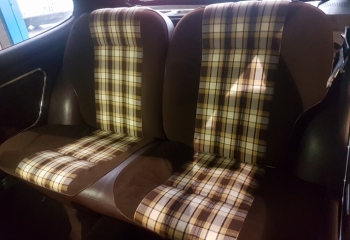 The interior is the now very rare chocolate brown check trim and its immaculate barring one very small section on the drivers seat where the piping has came adrift. The car drives as it should and is currently motd till April 18. We have some history with the car including pictures of when it came out of storage, the original handbooks and service book. It was serviced at 1500, 6000, 10000, 23000 and 33000 miles. It was also serviced when put back on the road but the book not stamped. The only other slight niggle is that the parcel shelf is split, a comnmon problem on capris.