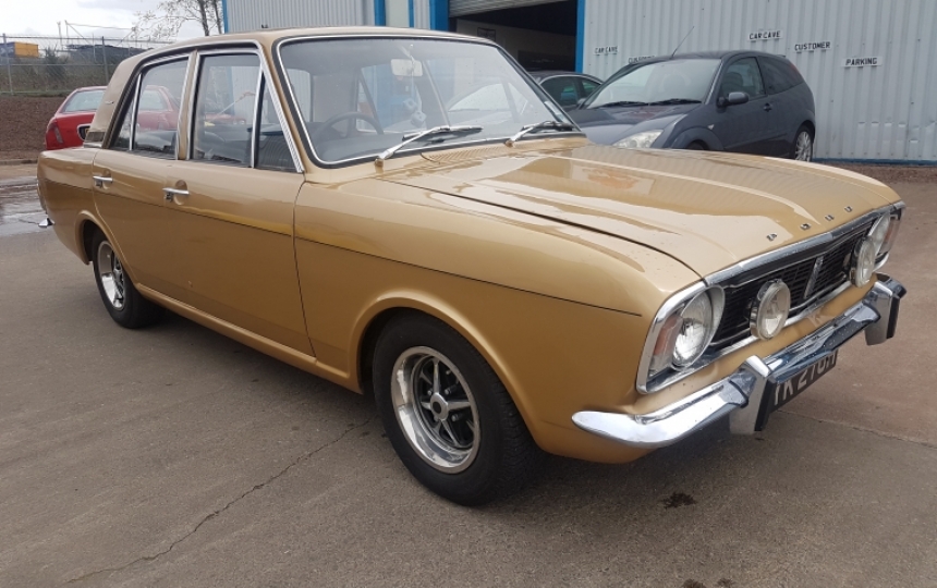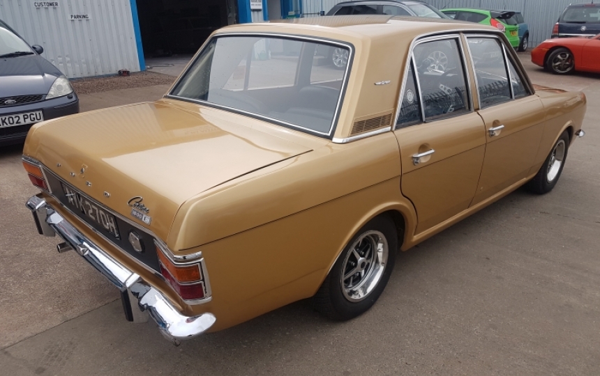 1970 Ford Cortina 1600E in Gold. Car has been in storage for a few years but will come with a full years MOT and can be driven away. Its a good looking car which was restored about 10 plus years ago. Last owner bought it in 2003 and restored it. He states that it was a fully stripped with the headlining being the only thing that wasnt taken out the car.