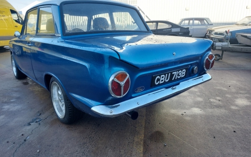 Body - Mk1 Cortina 2 Door shell. Original strut tops, inner wings, sills, arches, wings. Good straight car . Paintwork is very tidy. Minor bubbles on front of bonnet. Very solid underneath but has had a couple of repairs over the years. Very tidy solid looking car.