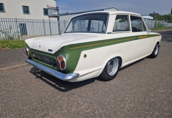 Body - Mk1 Cortina 2 Door shell which started its life as a Deluxe Model. Its had some work underneath in the past, as most have but is currently solid. Its allpainted body colour underneath and not caked in the underseal. Paintwork is nice and tidy and stands out with the additional Team Lotus decal. The car looks to have had arches and repairs to rear lower quarters in the past as there is evidence of a bit filler in these areas. If you want a show winner this might not be for you but if you want something that looks good and has a decent bit poke then read on. Good quarter bumpers, window rubbers and trim