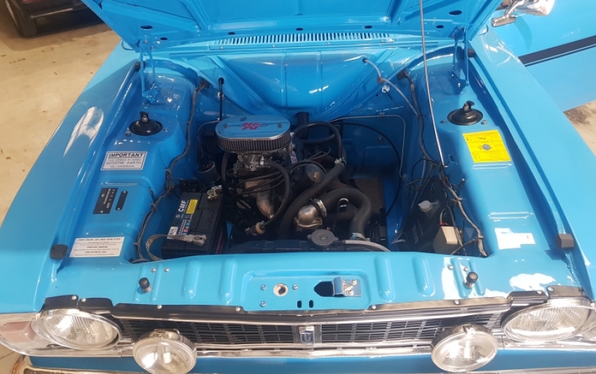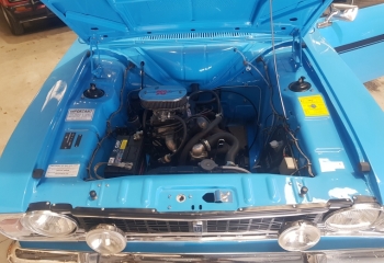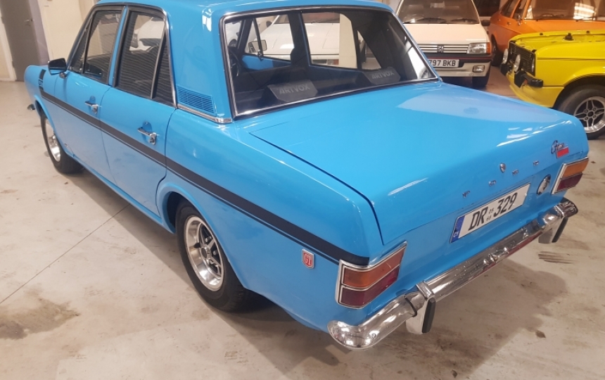 Body - Four door MK2 Cortina GT (BA97) shell. Never been welded from what we can see and superb from front to back. All original panels, gaps are good, Underneath has a light covering of underseal but you can still see the definition of every panel and every contour. Apart from a couple of small jacking up dents on the outriggers it looks as fresh as the day it left the factory. Paintwork is stunning and is as good on the boot floor, underside of the bonnet as it is outside. This was not its original colour, but the chap that refurbished the car liked it and also added the export spec GT stripes. This car would stand head and shoulders above most at your local car show and might even be worthy of a trophy.