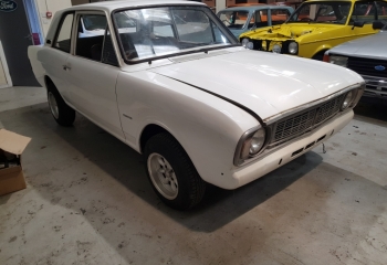 Body - 2 door MK2 Cortina export spec shell with extra strut top strengthening plates similar to 1600E and Lotus. Original and solid inner wings, arches, doors, bootlid, bonnet, wheel tubs, etc. Paintwork a bit scruffy due to age. Will need a couple of very minor repairs underneath on 1 outrigger and one rear wheel well. Overall though extremely solid and original for its age.