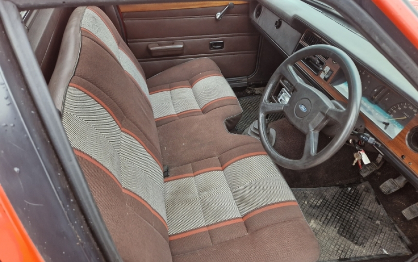 Interior - Upgraded leisure interior with bench seat with similar material to Escort 1600 Sports. wood dash and door cappings. Good carpet and headlining.