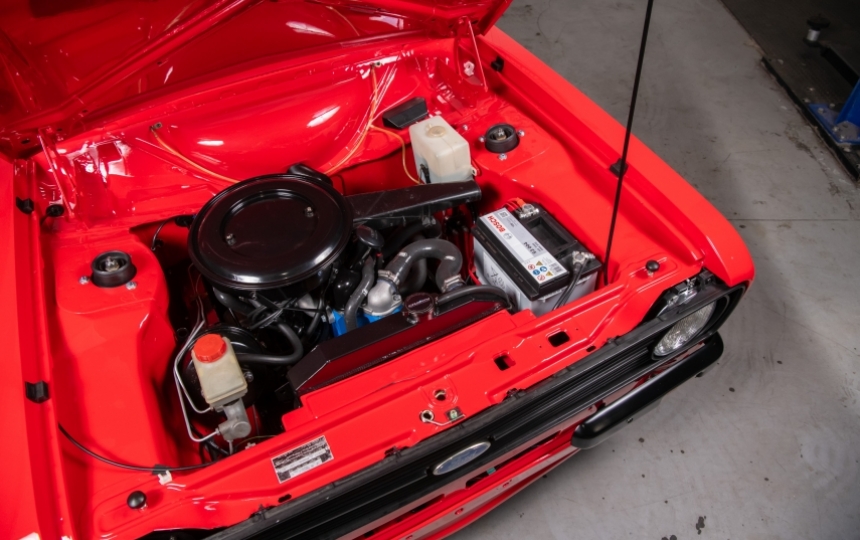 Body - Absolutely rock solid everywhere. This car is still on its original inner wings, floors, sills, rear arches, the car was stripped to bare metal during the restoration and repainted in Ford Venetian Red. It was painted everywhere including inside the floors, under the headlining. Underside was given a light coat of raptor and repainted in body colour. The car is very straight. New sport decal, headlights, window rubbers, door seals. UK style foglight fitted. This is a great looking car.