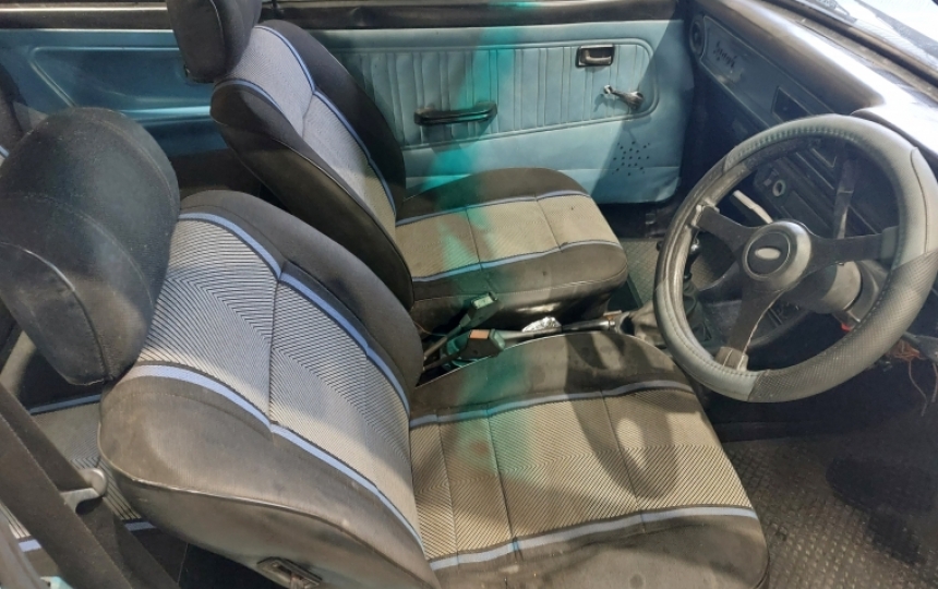 Interior - Original sport seats . Fronts are worn and will need repair. Rear seat is very clean. Will need a new dashtop. Headlining is also ripped. Door cards are original but have small speaker holes.