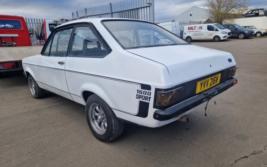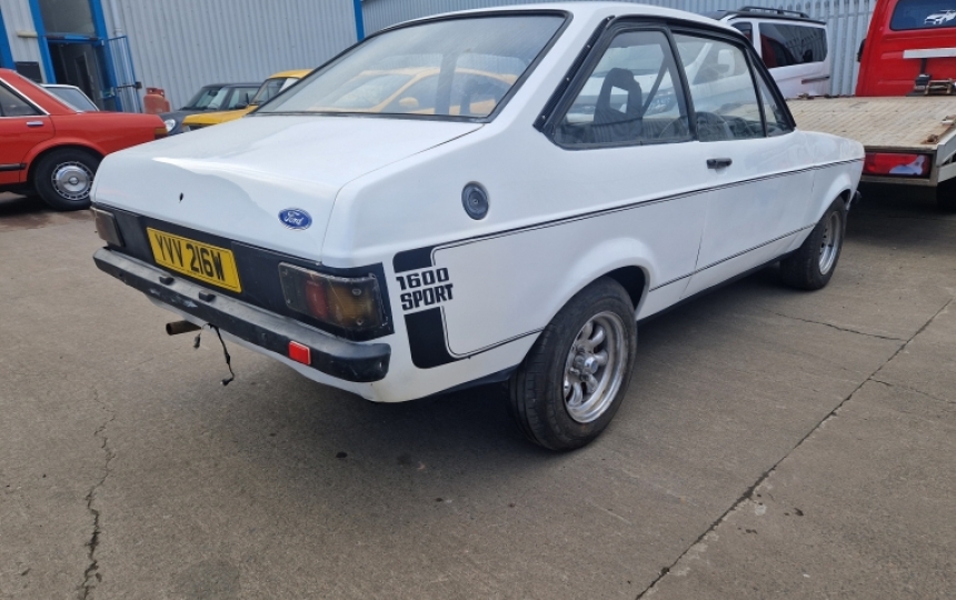 1981 Ford Escort 1600 Sport in need of restoration. RHD Import from South Africa which is fully UK registered and we have the V5 here. This car is fairly complete but will need a restoration. It is a genuine sport but currently is a bit rough but has potential as a cheap starting point.