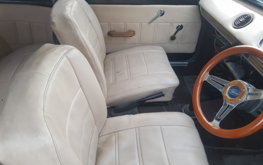Interior - Seats been retrimmed in Tan. No rips or tears but need a bit of a scrub up. Good headlining and door cards. Aftermarket steering wheel.