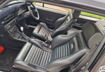 Interior - Flocked dashtop, front Recaros fully retrimmed in leather. Proper nice job with the rear seats done to match. Good door cards, carpet and headlining. Early white needle sport / ghia clocks which all work. Car is as nice inside as it is out.
