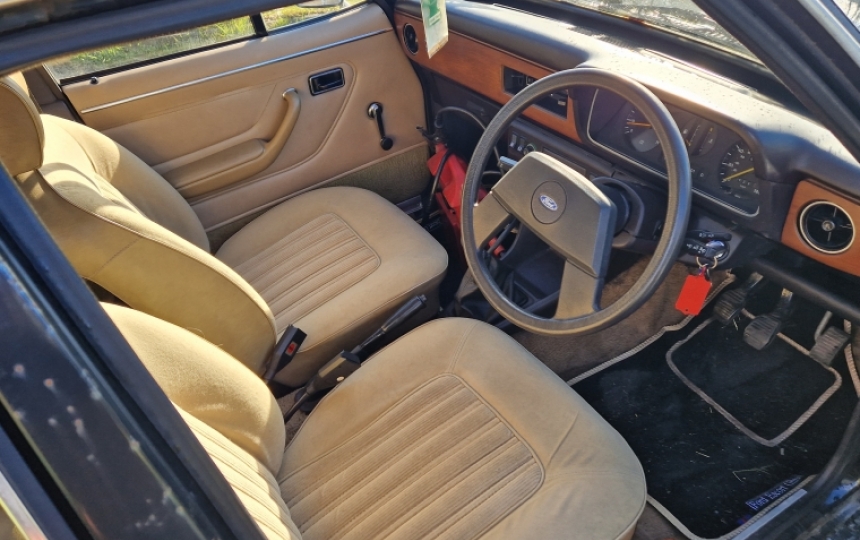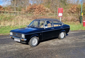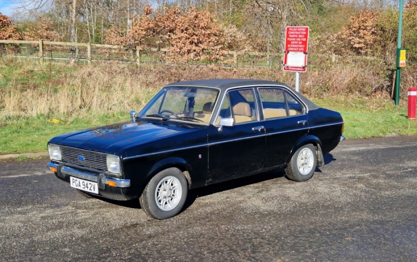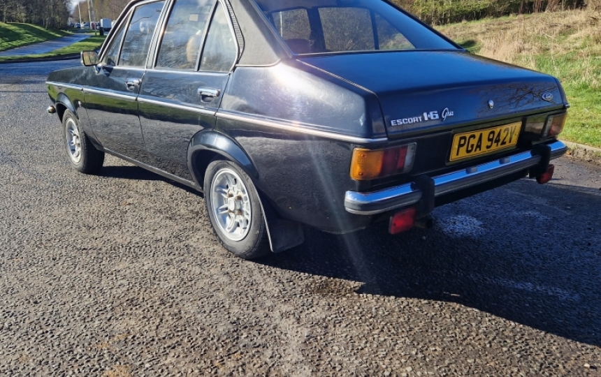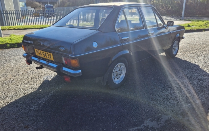 1980 Ford Escort MK2 1.6 Ghia in Black from New. This car had 1 owner from new till 2021 when the second owner acquired it. It was first registered new in Glasgow where it has remained all its days. We have the V5 showing 1 previous owner, some old tax discs, MOTs and original handbook, and accessory brochure. The car starts runs and drives but will need a bit light recommissioning.