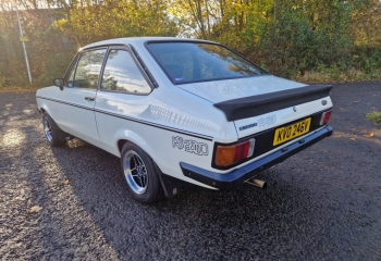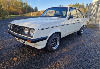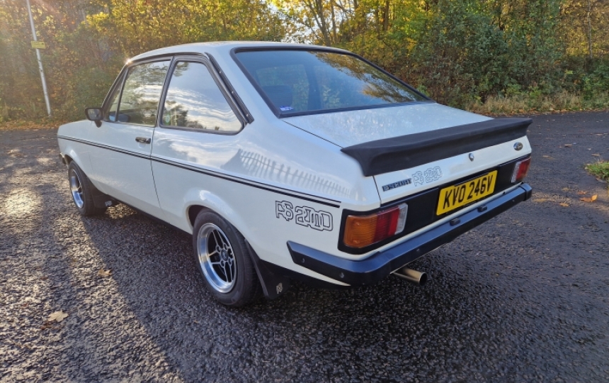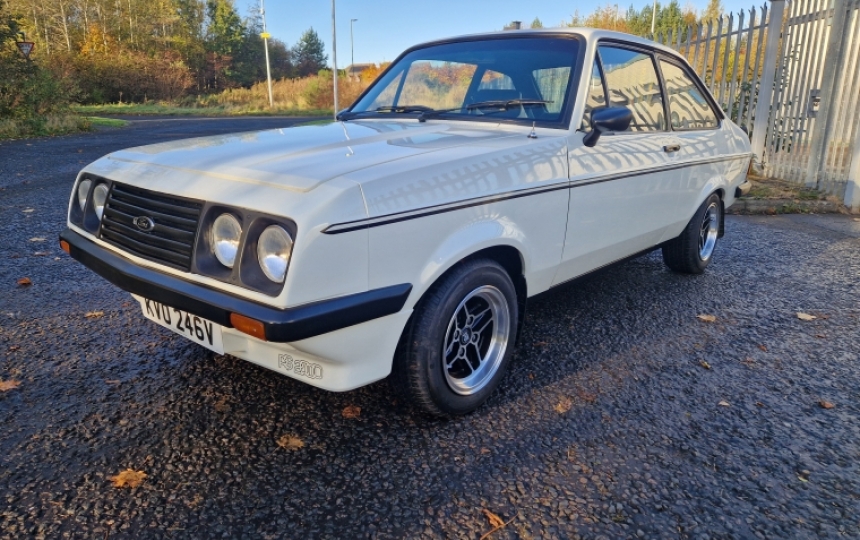 Advertising for a customer this 1980 Ford Escort RS2000. This is an Australian built car which has never had any welding underneath and is very very original structurally. Our customer bought it around 8 or 9 years ago when he lived in Australia and brought it back with him in 2023. The car shows 137000 kms which is around 85000 miles. It still has its original engine and is a matching numbers car. It starts runs and drives really well and feels nice and tight. It doesnt feel like some which have been in a million bits then put back together. We have two sets of keys and the V5 here