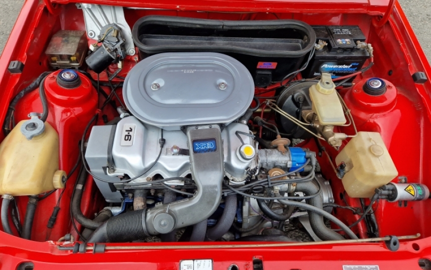 Body - Early XR3 shell with two bolt type strut tops. Good solid car. Original battery tray, floors, sills etc. Paintwork is very presentable. Bit of microblistering on passenger side on lower quarter and door. Quarter bumpers are wrong. They are just the standard type and not proper XR3 ones.
