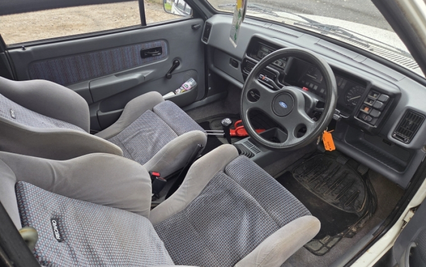 Ford Fiesta 1.6 XR2. 1989 F reg with 108,000 miles. Car starts runs and drives and has a long MOT. We have the V5 here showing 7 previous owners. Its a decent useable car but by no means a mint show car. It does have good potential to take it to the next level.