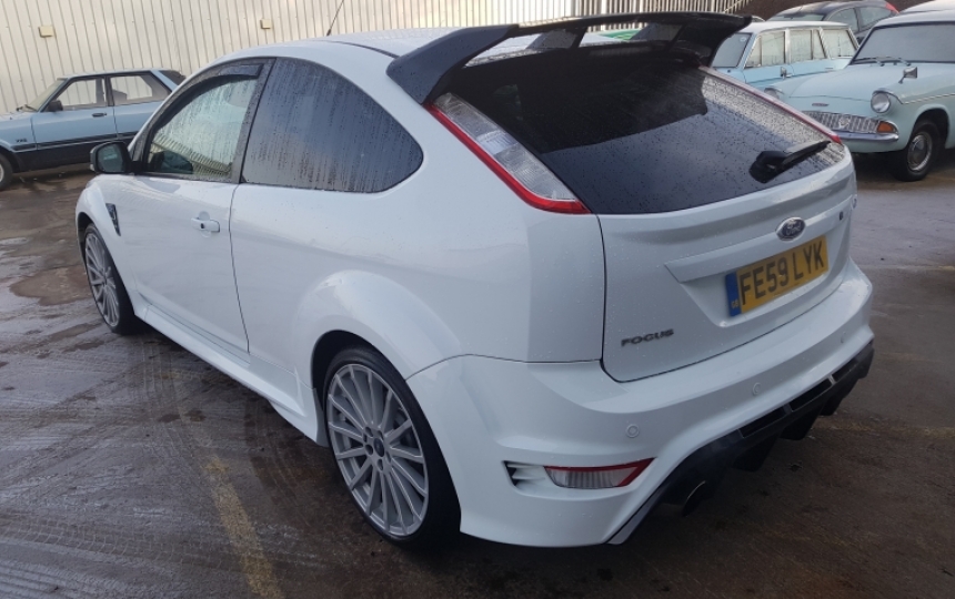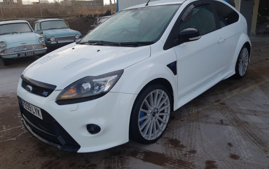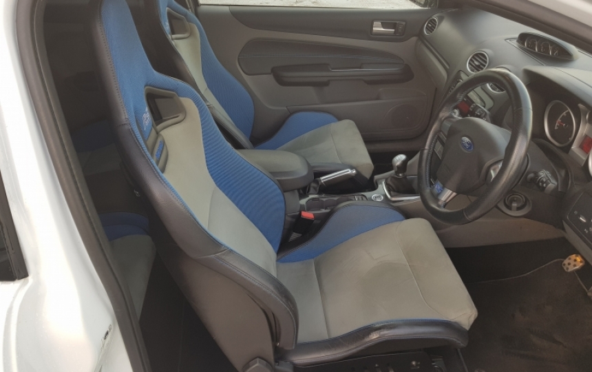 Ford Focus RS, Frozen White 2009 model with only 46000 miles from new. Very clean car with full service history. Clean unmarked alloys. HPI Clear. 2 Keys and Original Handbooks. Lux Pack 1 with bluetooth USB, Recaro Dynamica Alacantra seats, parking sensors, auto folding mirrors,keyless entry, Heko wind deflectors, Bi-Xenon Headlights, Bluetooth Phone Preparation, Reverse Parking Sensors, Rear Window Privacy Glass, CD Player/DAB Radio/MP3, Dual Zone Climate Control, Automatic Air Conditioning, Heated Front Windscreen, Remote Central Locking, Electric Windows, Electric Folding/Heated Door Mirrors, Body Coloured Bumpers, RS Body Styling, Rear Spoiler, Heated Front Windscreen, Auto Lights, Side Airbags; Tilt Steering Wheel; Passenger Airbag; Bluetooth Telephone; CD Player; Alarm; Anti-Lock Brakes (ABS); Rear Spoiler; Driver Airbag; Tuning; Power-assisted Steering (PAS); Rear seat belts; Immobiliser; Electronic Stability Program (ESP) Service History; Air Conditioning; V5 Registration Document; Park Safety Belt Pretensioners; Electric Windows; AM/FM Stereo; Climate Control.