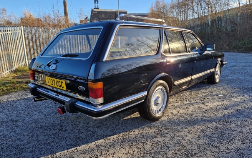 Body - Mk2 Granada Estate. Very Solid car from front to back. Floors look good and solid as do the chassis rails, sills, arches etc. All outer panels are good and straight. Panel gaps are good. Paintwork is very tidy. Bit of paint flaking on drivers screen pillar and two minor bubbles on front of bonnet otherwise really good looking car all round. Good bumpers, trim, spotlights.