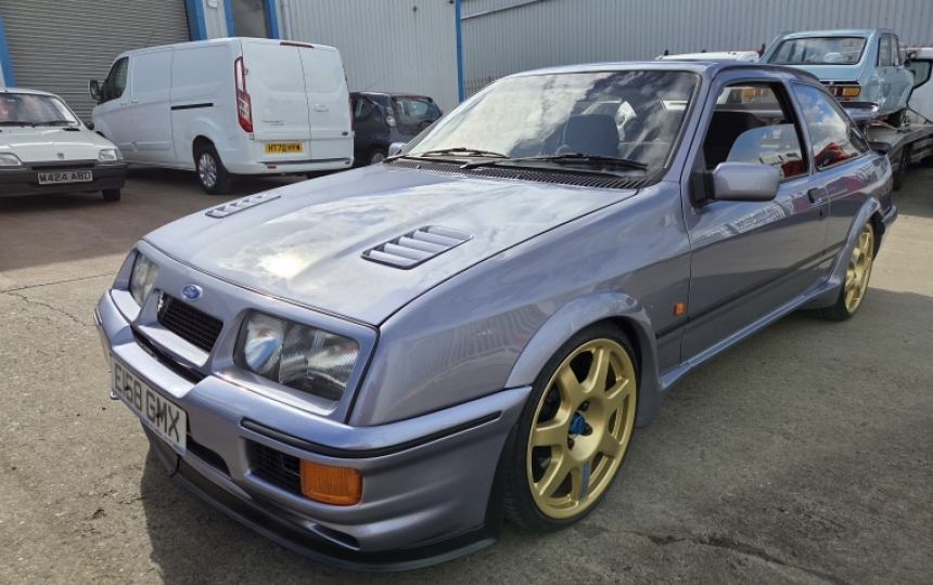 Its a Moonstone Blue 3 door cosworth with all genuine RS500 parts which looks correct being on a E plate. Same owner for the last 16 years wanted for nothing over the years
