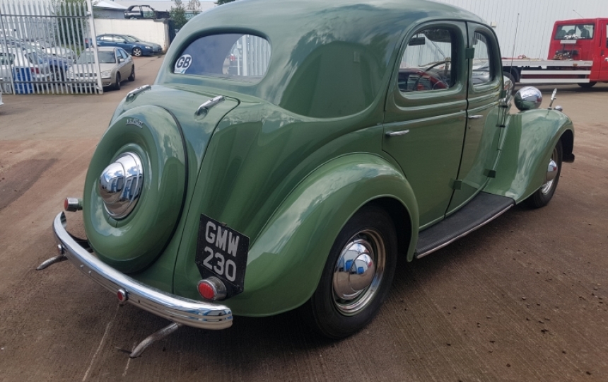 1950 Ford V8 Pilot. Very tidy old car which has survived well. Its showing 4 previous owners and 80000 miles. The body is very straight and in remarkable condition for its age. Paintwork has been refreshed at some point. Its nice and tidy but by no means concourse. Underneath is solid. Would benefit from a bit of a wire brush and paint or underseal in places to keep it protected.