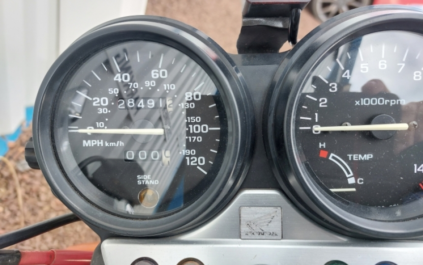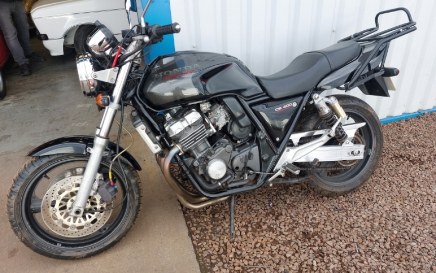 Honda CB400 Super Four( NC31). This bike was imported to the Uk in 1997. It comes with a years MOT just done. The tyres are very recent and really good. Its got a rear carrier fitted and heated grips. Its showing 28k kms which is approx 17K miles. Recent plugs and horn replaced. A battery was fitted in Nov 2021. It also has a trickle charger lead fitted for an Oxford Oximiser 600.