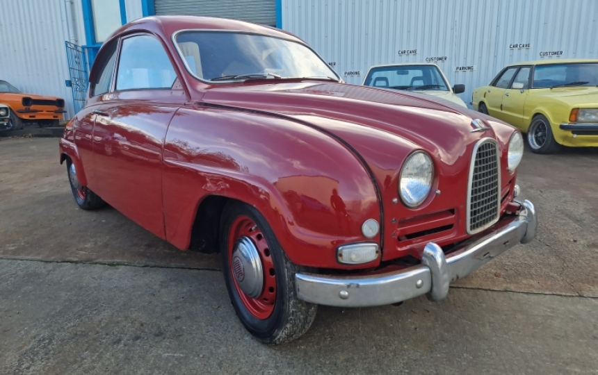 Saab 93F Left Hand Drive 2 Stroke which was recently imported from South Africa. This car is solid from front to back and has never been welded as far as we can see. It starts and runs but will need a bit work. All import tax and duty has been paid and the NOVA declaration done. We will assist the new owner with the Uk registration.